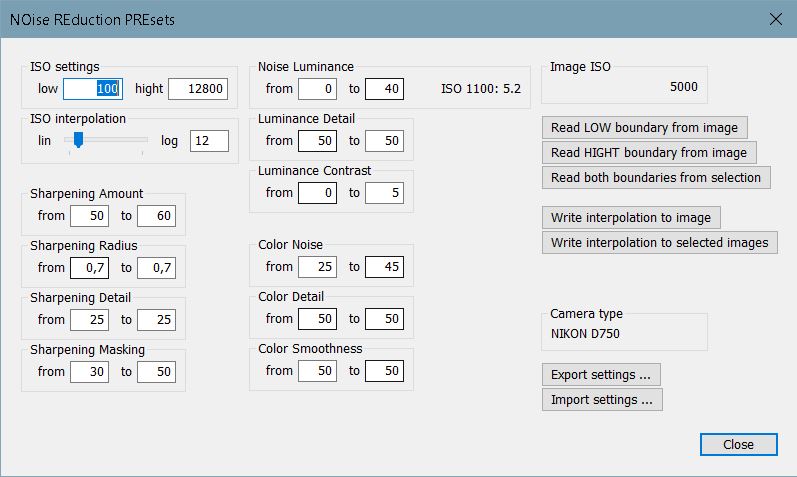- Klikneme na Read both boundaries from selection. Plugin v souboru fotek najde tu s nejnižším a nejvyšším ISO a vezme si z nich hraniční hodnoty všech deseti táhel sekce Detail tak, jak jsme je ve druhém bodu nastavili, a je schopen interpolovat mezilehlé hodnoty.