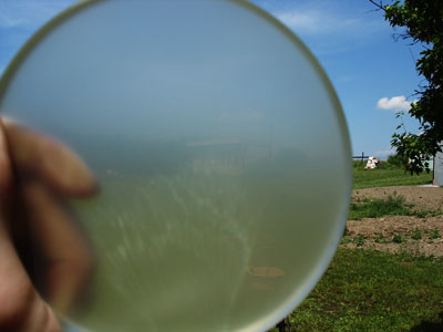 Při normálním broušení už se v této fázi také s tahy, které byly doposud vedeny mimo střed podložky zhruba ve třetině jejího průměru, můžeme postupně přemisťovat ke středu podložky. Od chvíle, kdy bude okraj menší než 1 cm již můžeme brousit zcela normálními tahy vedenými přímo přes střed podložky. V momentě, kdy se probroušená oblast začne dotýkat okraje, překontrolujeme fazetku a pokud by na některých místech byla příliš malá, zvětšíme ji brouskem, aby nedocházelo k zaštipování okrajů. Až bude zrcadlo probroušeno v celé své ploše, provedeme očištění, nasypeme čerstvé brusivo a bez jeho přidávání budeme brousit ještě asi půl hodiny (podle potřeby jen dokapáváme vodu). Tato první fáze broušení trvala u 125 mm zrcadla cca 5 hodin. Před přechodem na jemnější brusivo musíme vždy provést pečlivé vyčištění celého pracoviště tak, aby nikde nezůstalo ani zrnko hrubšího brusiva. To znamená pečlivé omytí zrcadla, podložky včetně důkladného vyčištění drážek, rozebrání špalíků, sejmutí mikrotenového sáčku a pečlivého omytí stolku a všech těchto součástek. Také se při celém průběhu broušení vyvarujeme otírání rukou o oblečení, tak bychom si spolehlivě později pracoviště znečistili hrubými brusivy, a tedy zrcadlo poškrábali. Po očištění a smontování pracoviště můžeme přejít na brusivo 8. Tím brousíme normálními tahy a jednou za čas lupou kontrolujeme stav plochy zrcadla, které musí být očištěné a suché. Uvidíme, že plocha je sice rovnoměrná, ale místy se v ní objevují větší krátery a záprasky (zaprasknuté kousky skla, které ještě drží v ploše a teprve časem se vydrolí a dají vzniknout kráterům). Cílem broušení jemnějším brusivem je všechny tyto krátery a záprasky odstranit. Připravte se na to, že je to práce zdánlivě nekonečná a vyžaduje hodně trpělivosti. Vždy, když se nám zdálo, že plocha je už téměř čistá, nechali jsme si jí překontrolovat panem Procházkou a ten zcela pravidelně pronášel své obligátní věty: "No už je to lepší, ale tady máme ještě kráter, vidíte ho? No ještě tak hodinku a budete moci přejít na jemnější." Co myslíte, že se opakovalo po té hodince? Pan Procházka samozřejmě velmi dobře věděl, co říká a proč to říká. Množství skla, které je hrubší brusivo schopno odebrat za "ještě tak hodinku" by jemnější brusivo odebíralo "ještě tak půl dne". Čím pečlivěji se zbavíme kráterů a záprasků hrubším brusivem, tím výrazně kratší dobu nám pak bude trvat práce s jemnějšími brusivy. Pokud se nám zdá, že v některé oblasti zrcadla se zbavujeme záprasků výrazně rychleji než v jiné (například okraje už jsou dobré, ale ve středu je mnoho zbylých vad), znamená to, že nemáme správnou délku tahů. Delší tahy vybrušují více střed, kratší tahy naopak okraje. V uvedeném příkladu bychom tedy prodloužili tahy. Průběžně také kontrolujeme a případně upravujeme fazetku, teď už velmi opatrně, abychom si z okraje nezpůsobili nějaký záprask do plochy zrcadla. Tato fáze broušení trvala skoro nekonečných 7 hodin, ale není podstatná doba nýbrž kvalita plochy. Někomu se to může povést rychleji, někomu naopak pomaleji. Na konci opět brousíme půl hodiny jednou dávkou brusiva, a pak po pečlivém očištění pracoviště přecházíme na brusivo č. 6. Brusivem 6 pokračujeme v práci se stejným cílem - zjemnit plochu a zbavit jí kráterů. Tato fáze trvala 5 hodin. Nezapomínáme občas lupou kontrolovat také fazetku a případně jí opravovat. Po brusivu 6 nasadíme brusivo č. 4, se kterým mi práce trvala opět 5 hodin. Čím jemnější brusivo používáme, tím méně ho aplikujeme, a tím je také celý proces citlivější na množství vody. Zrcadlo také k podložce více lne a při sundávání je třeba ho stáhnout směrem k sobě nebo od sebe a nesnažit se ho od podložky odtrhnout páčením. Tím bychom si téměř spolehlivě způsobili silný záprask na fazetce, na kterou bychom bodově působili páčením obrovskou silou. Zrcadlo také v celém průběhu broušení a zejména potom leštění nenecháváme ležet na podložce bez dozoru. Dvě kulové plochy po sobě snadno sklouznou a nechat padnou na zem mnoho hodin své práce, by nás jistě mrzelo. Po brusivu 4, tedy velikost zrna 40 mikrometrů přejdeme na brusivo M32, tedy 32 mikrometrů. Brusiva M jsou již tak jemná, že by se velmi špatně nanášela sypáním. Proto do lahvičky s brusivem nakapeme několik kapek vody, rozmícháme na hustou kaši a tu na podložku nanášíme špejlí nebo nějakým vhodným klacíkem. Naneseme čtyři malé bobky kaše a drážky zaplníme po okraj vodou z kapátka. Při pokládání zrcadlo nadlehčujeme a v tomto nadlehčení nejprve několika vhodnými pohyby brusivo rovnoměrně rozetřeme po ploše. Teprve pak přejdeme k broušení. Pečlivě dbáme na čistotu, pokud je teplo, je vhodné se svléci do půl těla a sundat si hodinky, abychom si pracoviště neznečišťovali prachem z oblečení, dáváme pozor na vítr, který víří prach atd. Každé hrubší zrnko brusiva nebo ostrá prachová částice způsobí v ploše nepříjemné škrábance nebo ještě horší škrábance se záprasky. Pokud je takový škrábanec příliš hluboký, nezbude nám než se vrátit o jeden či dokonce dva stupně brusiva zpět a opravit ho. Mně osobně se dařilo a brusivem M32 i následně M15 jsem pracoval vždy pouze hodinu. Tady se vrátí pečlivost a trpělivost u hrubších brusiv. Přešel jsem na brusivo M7, kterým jsem brousil jen asi tři doplnění brusiva, tedy zhruba půl hodiny. Někteří u brusiva M7 končili, já jsem ještě risknul jedno nanesení brusiva M3 (cca 20 minut). U takto jemných brusiv je